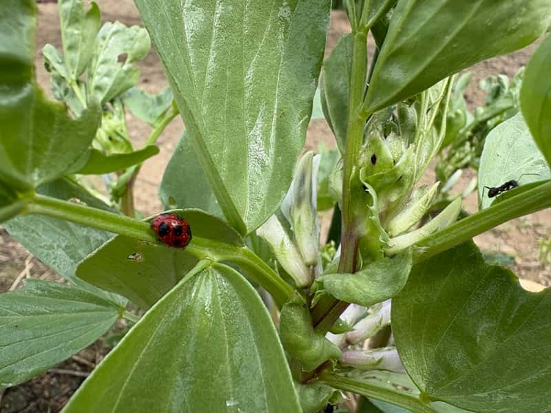ソラマメは春になるとぐんぐん生長し、新芽が次々と出てきます。そのため、アブラムシにとってはとても居心地のよい環境になりやすい野菜です。