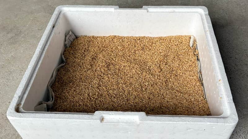 もみ殻は、湿度をやさしく保ちながら温度を安定させる天然の保温材。